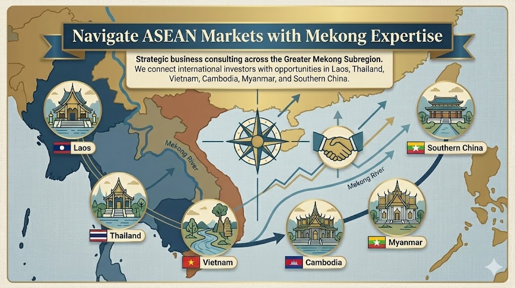 Strategic business consulting across the Greater Mekong Subregion. We connect international investors with opportunities in Laos, Thailand, Vietnam, Cambodia, Myanmar, and Southern China.